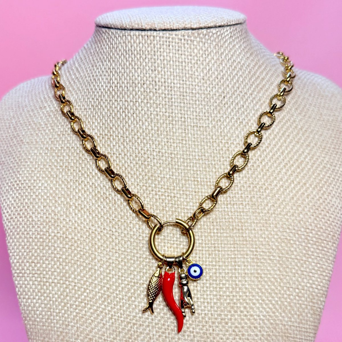 All chains are stainless steel, long-lasting, & hypoallergenic. Charms are a mix of stainless steel, 14k gold-plated, alloy, and enamel. Standard chain lengths are approximately 18 inches with extenders included. Please message @yay_diff on instagram or email yaydiffjewelry@gmail.com for any customization or sizing requests, and we will do our best to accommodate.