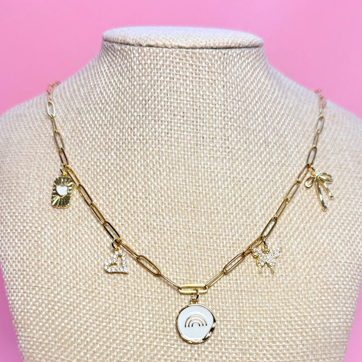 All chains are stainless steel, long-lasting, & hypoallergenic. Charms are a mix of stainless steel, 14k gold-plated, alloy, and enamel. Standard chain lengths are approximately 18 inches with extenders included. Please message @yay_diff on instagram or email yaydiffjewelry@gmail.com for any customization or sizing requests, and we will do our best to accommodate.